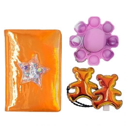 Gift box με πορτοκαλί σημειωματάριο Star, λαστιχάκι και κλιπ μαλλιών teddy bear και ροζ pop it