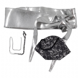 Gift box με γυναικεία γκρι ζώνη one size, μάσκα KN95 lace print και ασημί αλυσίδα γυαλιών και μάσκας