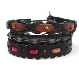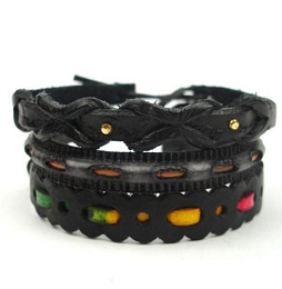 Μαύρο τρίσειρο έθνικ δερμάτινο βραχιόλι