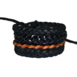 Μαύρο πλεκτό unisex δερμάτινο βραχιόλι