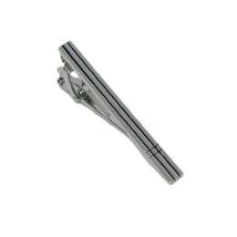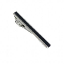 Ασημί clip γραβάτας με μαύρες ρίγες από σμάλτο
