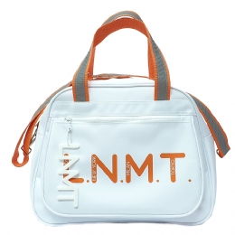 Μεγάλη λευκή τσάντα L.N.M.T. με πορτοκαλί ανακλαστικό ιμάντα