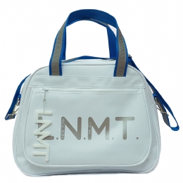 Μεγάλη λευκή τσάντα L.N.M.T. με royal μπλε ανακλαστικό ιμάντα