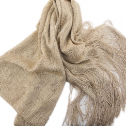 Εκρού διχτυωτή εσάρπα με ασημί lurex και μακριά κρόσσια