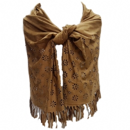 Caramel μπεζ εσάρπα με χρυσαφί lurex από μαλακό ύφασμα