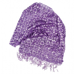 Μωβ οβάλ διχτυωτή εσάρπα με ασημί lurex και μακριά κρόσσια