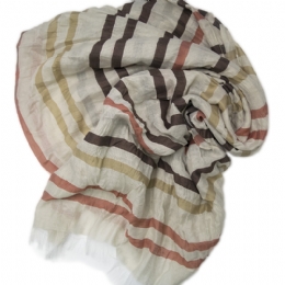 Sand μπεζ crashed Ιταλικό φουλάρι με λευκές ρίγες