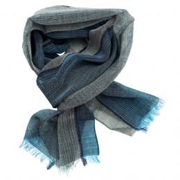 Ανθρακί crashed Ιταλικό φουλάρι με γκρι και λευκές ρίγες