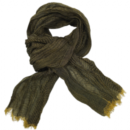 Χακί πλεκτό Ιταλικό φουλάρι από βαμβάκι με καρό πλέξη
