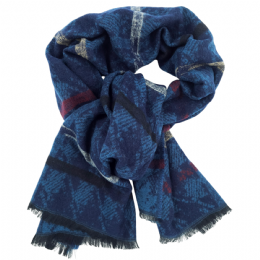 Μπλε jeans πλεκτό Ιταλικό φουλάρι από βαμβάκι με καρό πλέξη
