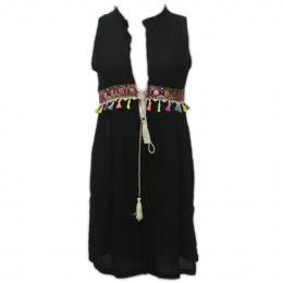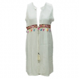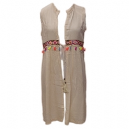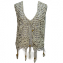 Πλεκτό διάτρητο βαμβακερό γιλέκο με κρόσια και ξύλινες χάντρες