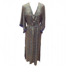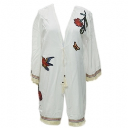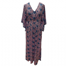 Μακρύ βαμβακερό Ινδικό καφτάνι με floral embroidery