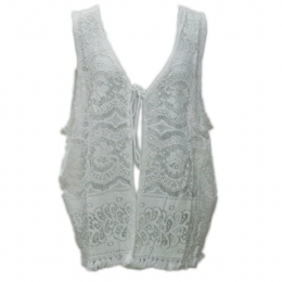 Πλεκτό βαμβακερό γιλέκο με διάτρητα λουλούδια και κρόσια