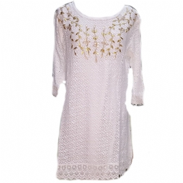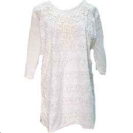 Λευκό βαμβακερό Ινδικό καφτάνι με χρυσό κέντημα