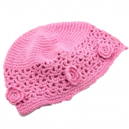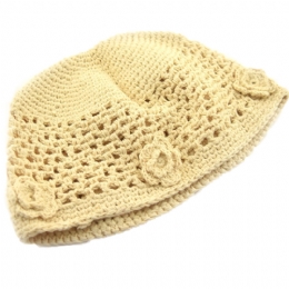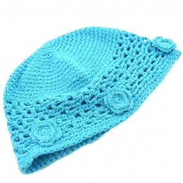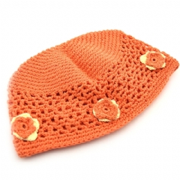 Παιδικό διάτρητο βαμβακερό σκουφάκι με πλεκτά λουλούδια