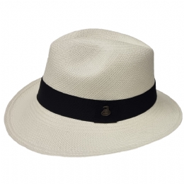 Natural beige Panama καπέλο με μαύρη κορδέλα και σκληρό γείσο