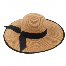 Ψάθινο κάμελ καπέλο με μαύρη κορδέλα