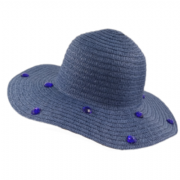 Μπλε ψάθινο καπέλο με royal blue πέτρες