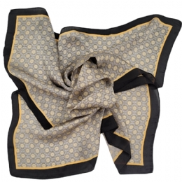 Μεγάλη τετράγωνη εκρού Ιταλική μαντήλα με κίτρινη και σομόν πιτσιλωτή μπορντούρα από σύμμεικτο βαμβάκι