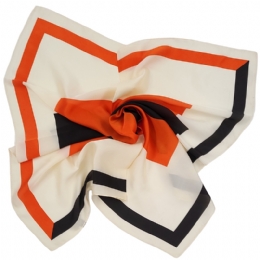 Μεγάλη τετράγωνη εκρού Ιταλική μαντήλα με terracotta και μουσταρδί patches