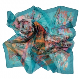 Φούξια Ιταλική chiffon μαντήλα με πετρόλ, ροζ και μωβ πινελιές