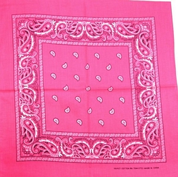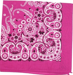 Λευκή Αμερικάνικη βαμβακερή μπαντάνα με ροζ και βεραμάν λαχούρ σχέδιο