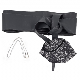 Gift box με γυναικεία μαύρη ζώνη one size, μάσκα KN95 lace print και ασημί σφυρήλατη αλυσίδα γυαλιών και μάσκας