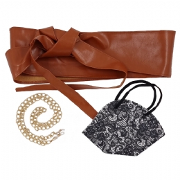 Gift box με γυναικεία ταμπά ζώνη one size, μάσκα KN95 lace print και χρυσή σφυρήλατη αλυσίδα γυαλιών και μάσκας