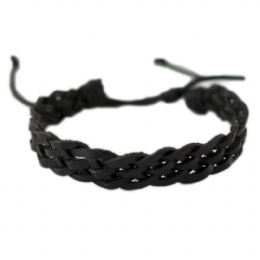 Μαύρο πλεκτό unisex δερμάτινο βραχιόλι