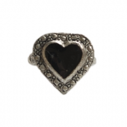 Retro δαχτυλίδι καρδιά με μαύρο σμάλτο