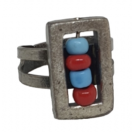 Antique ασημί ορθογώνιο δαχτυλίδι με μπορντό και γαλάζιες πέτρες