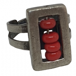 Antique ασημί ορθογώνιο δαχτυλίδι με μπορντό πέτρες