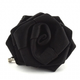 Ανθρακί μεγάλη μπουτονιέρα λουλούδι από δερματίνη και συνθετικό γούνινο pon-pon