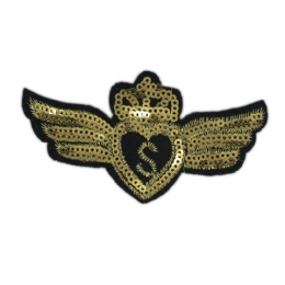 Καρφίτσα Angel wings και καρδιά με χρυσές παγιέτες
