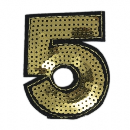Καρφίτσα Number 5 με χρυσές παγιέτες