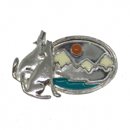 Ethnik ασημί καρφίτσα με χειμερινό τοπίο και λύκους