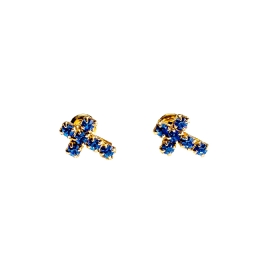 Χρυσά σκουλαρίκια σταυρουδάκια με royal μπλε στρας