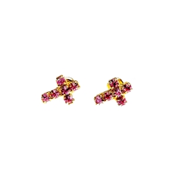 Χρυσά σκουλαρίκια σταυρουδάκια με ροζ στρας