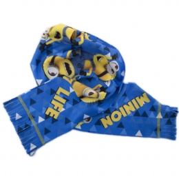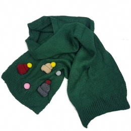 Μονόχρωμο πλεκτό παιδικό κασκόλ με pom pom και σκουφάκια