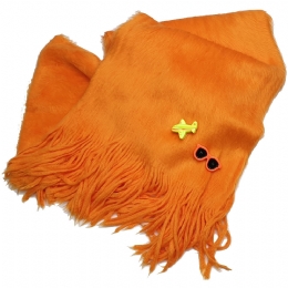 Πορτοκαλί fluo χνουδωτό εφηβικό κασκόλ με καρφίτσες αεροπλανάκι και γυαλιά