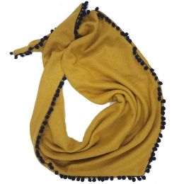 Μουσταρδί τρίγωνο παιδικό φουλάρι - κασκόλ με μικρά pom-pom