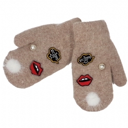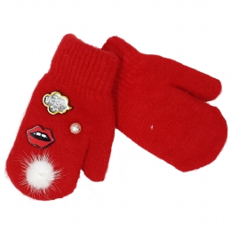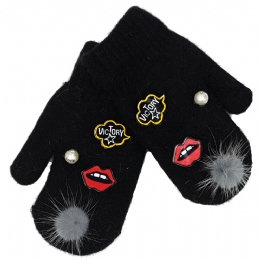 Παιδικά γάντια χούφτες με περλίτσες, χειλάκια και pom pom