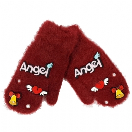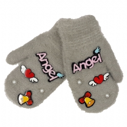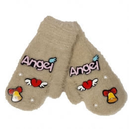 Παιδικά μαλλιαρά γάντια χούφτες Angels με περλίτσες και καρδούλες