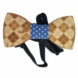 Μπλε ανάγλυφο παιδικό υφασμάτινο παπιγιόν με κόκκινα τετράγωνα