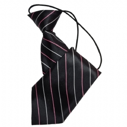 Μαύρη παιδική γραβάτα με ροζ και λευκές λεπτές ρίγες