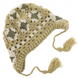 Πλεκτό διάτρητο σκουφάκι με λαδί μοτίφ