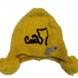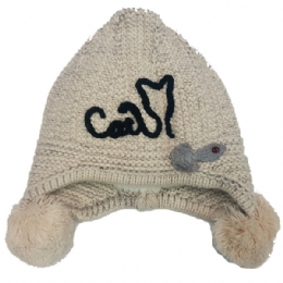 Παιδικός πλεκτός σκούφος με γάτα και ψαράκι