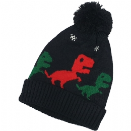 Βρεφικός σκούφος με φούντα και δεινόσαυρους με fleece επένδυση
