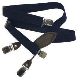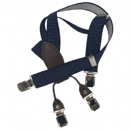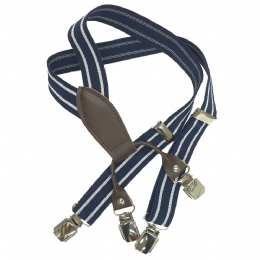 Μπλε με διπλές λευκές ρίγες unisex παιδικές τιράντες με καφέ συνθετικό δέρμα