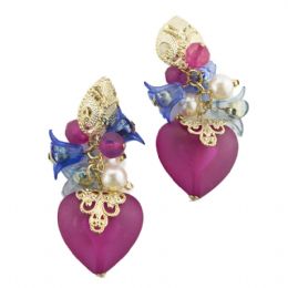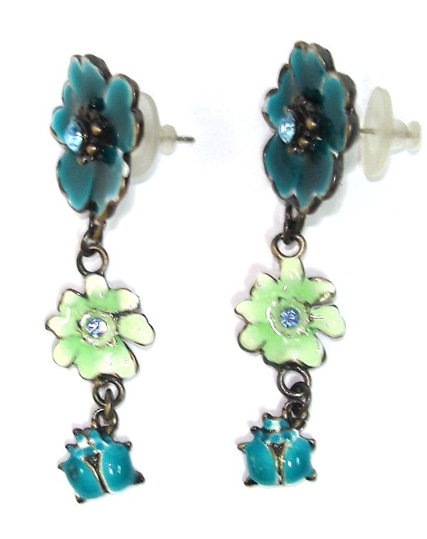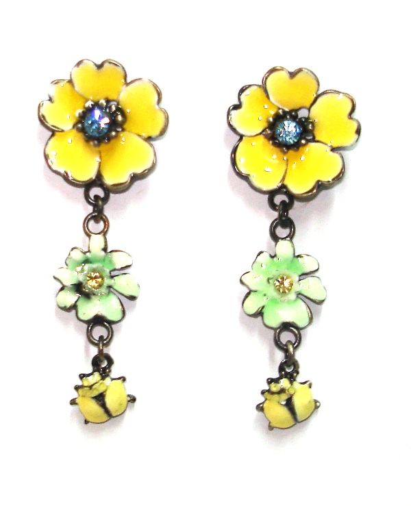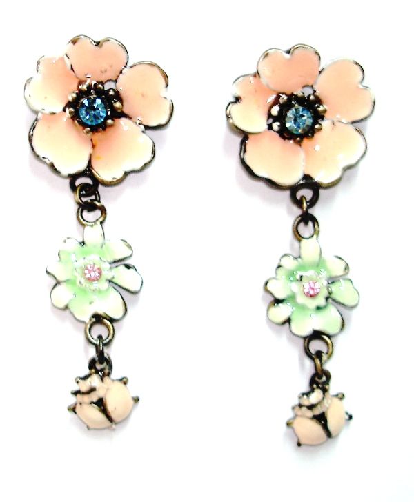 Κρεμαστά floral σκουλαρίκια με πασχαλίτσες από σμάλτο